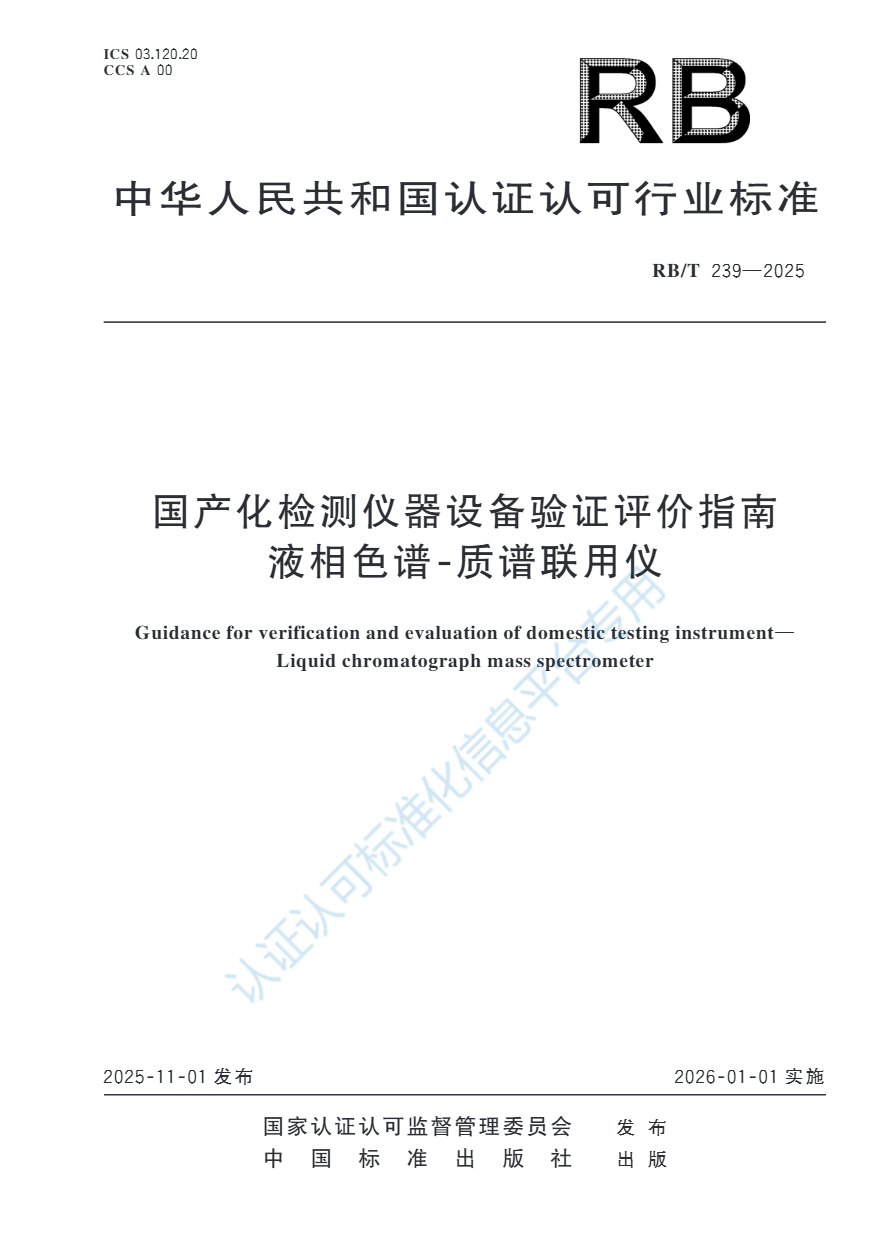 【行业标准】国产化检测仪器设备验证评价指南 液相色谱-质谱联用仪