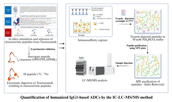 图1. IC-LC–MS/MS方法用于人源化IgG1抗体偶联药物(ADC)的定量分析流程