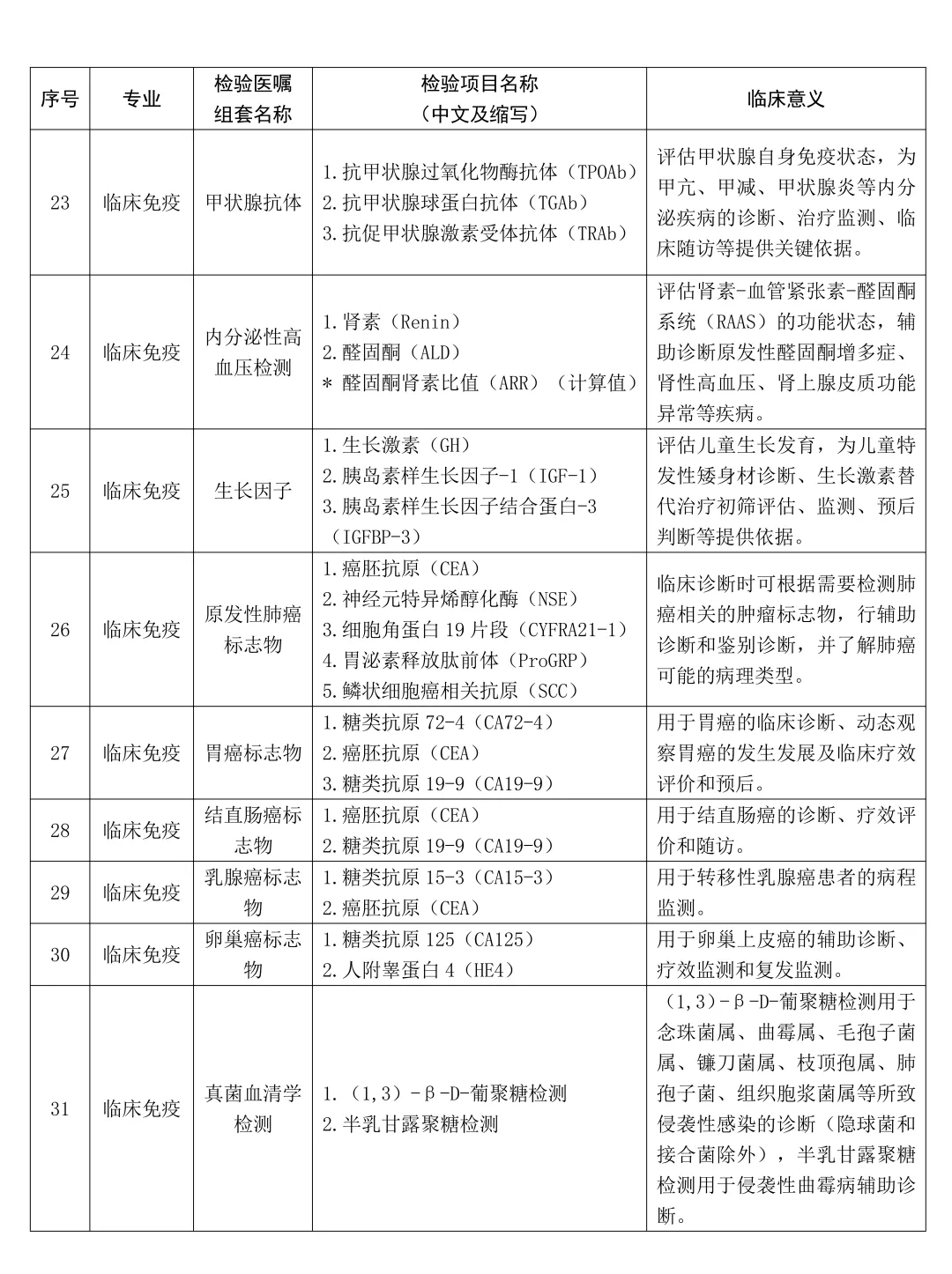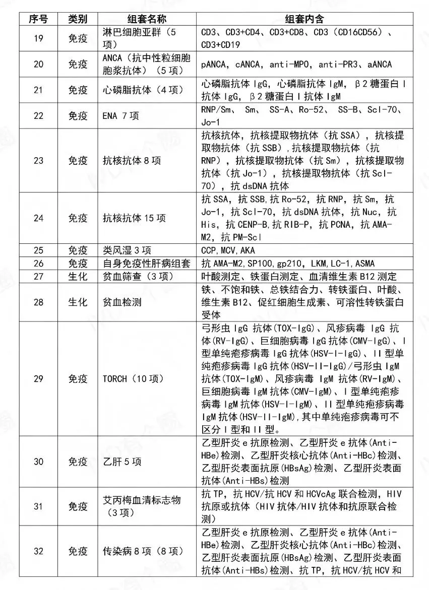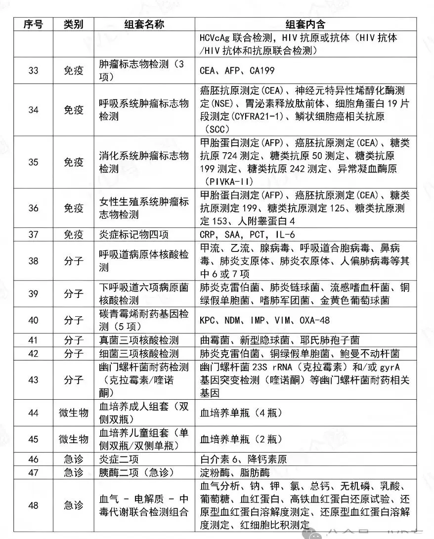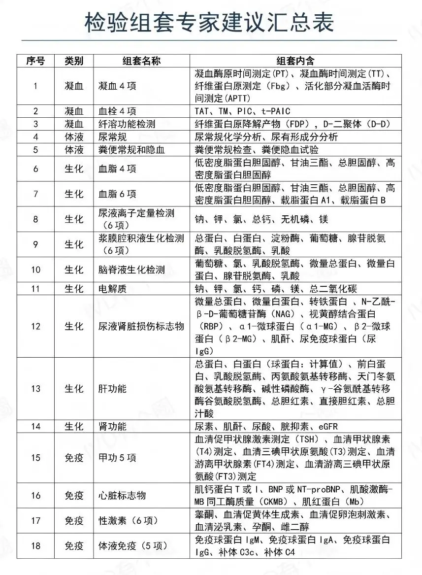 《江苏省检验组套专家建议(征求意见稿)》中则包含了48项检验组套建议,内容更加丰富、全面,针对性也更强。其中,针对儿童血培养、女性生殖系统肿瘤标志物检测等特殊临床场景与需求,均专门设置了专属组套,进一步贴合不同人群、不同病症的诊疗适配性。