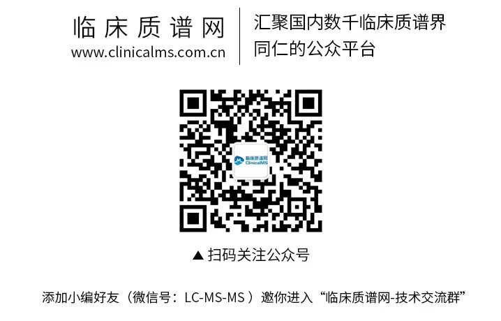 该类试剂使用的串联质谱主要为三重四极杆串联质谱和四极杆离子阱串联质谱(Q-trap)。扫描模式主要包括以下四种:前体离子(precursor ion, PI)扫描、中性丢失(NL)扫描、多反应监测(MRM)扫描和产物离子(product ion,PI)扫描。前体离子扫描通常用于酰基肉碱的分析检测,在第二级质量分析器中选择特定质荷比的产物离子,测定在第一级质量分析器中一定质量范围内所有能产生该碎片的前体离子。中性丢失扫描通常用于氨基酸的分析检测,以恒定的质量差异,在一定质量范围内同时测定第一级、第二级质量分析器中所有的前体离子和产物离子,检测能产生特定中性碎片丢失的前体离子。多反应监测扫描是将第一级质谱设定为用于筛选特定的前体离子,在第二级质谱中指定所需的产物离子,同时监测前体离子-产物离子。产物离子扫描是在第一级质量分析器中选择特定质荷比的前体离子,测定该前体离子在第二级质量分析器中,一定质量范围内的所产生的特定产物离子。四种扫描模式各有优缺点,在实际中应根据产品特性选择适合的扫描模式。