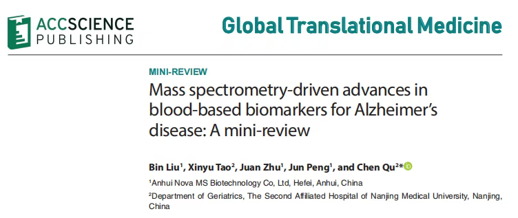 近日,歆智生物与南京医科大学第二附属医院的Chen Qu主任课题组在Global Translational Medicine上发表了题为"Mass spectrometry-driven advances in blood-based biomarkers for Alzheimer's disease: A mini- review"的综述研究,就质谱技术在阿尔茨海默病的早期筛查、临床诊断表现、疗效评估等部分内容进行梳理和总结。