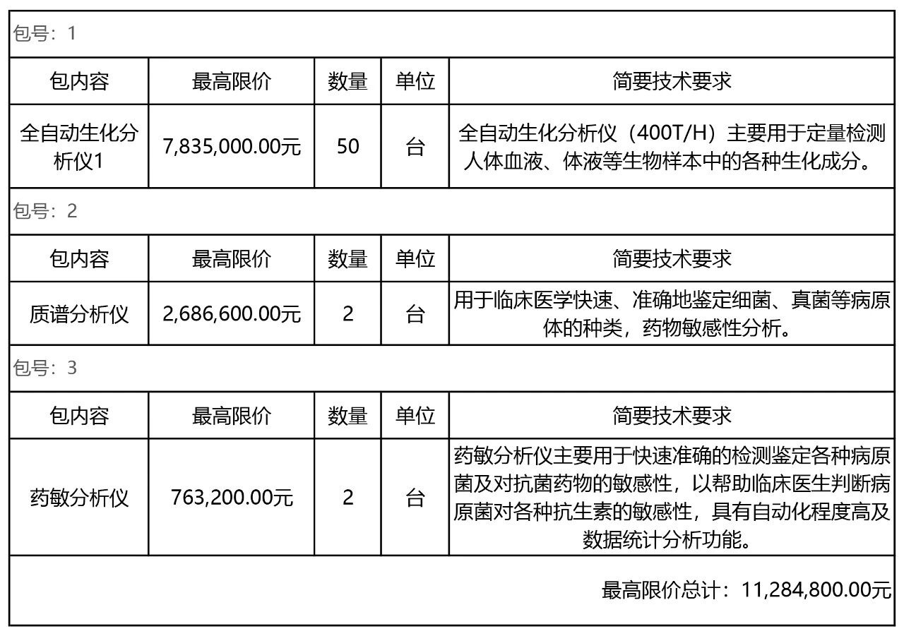 近日,中国政府采购网发布重庆市县域医共体医疗设备更新采购医疗设备一批公开招标公告,涉及质谱分析仪、全自动生化免疫分析仪等,预算金额为1128.48万元,具体信息如下: