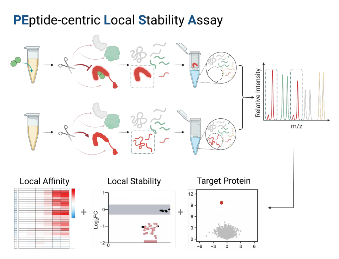 2024年12月10日,中科研大连化物所叶明亮团队在Nat Methods发表题为 “A peptide-centric local stability assay enables proteome-scale identification of the protein targets and binding regions of diverse ligands”的研究论文,利用蛋白质在结合配体后局部稳定性的变化,开发了一种在复杂体系中可以同时高灵敏鉴定配体结合蛋白和结合位点的蛋白质组学新方法。该方法无需对配体进行化学修饰,广谱适用于包括代谢物、药物、污染物等不同结构配体的靶蛋白质分析。