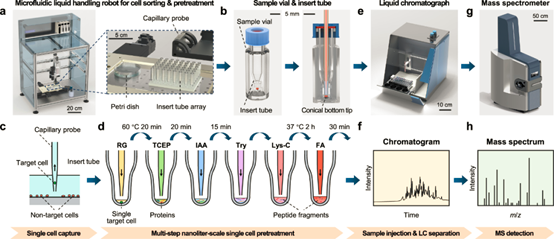 基于纳升级微流控液体处理机器人,实现了单细胞的精准捕获、前处理以及自动进样