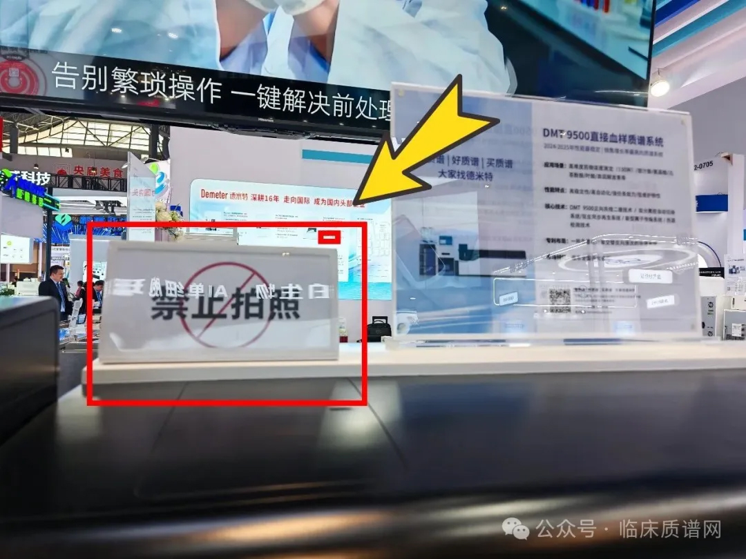 同时,为保护知识产权,每款仪器旁都放置了醒目的“禁止拍照”提示牌,尤其在一款未发布的新品(此次展出,供同行参观并征集改进建议)旁,还安排了专人值守,这种严谨的态度在整个展馆中算是独一家了。作为连续6年亮相CACLP的企业,德米特此次还带来了DMT 9500高效液相色谱串联质谱系统、MLC二维液相色谱系统等核心产品。