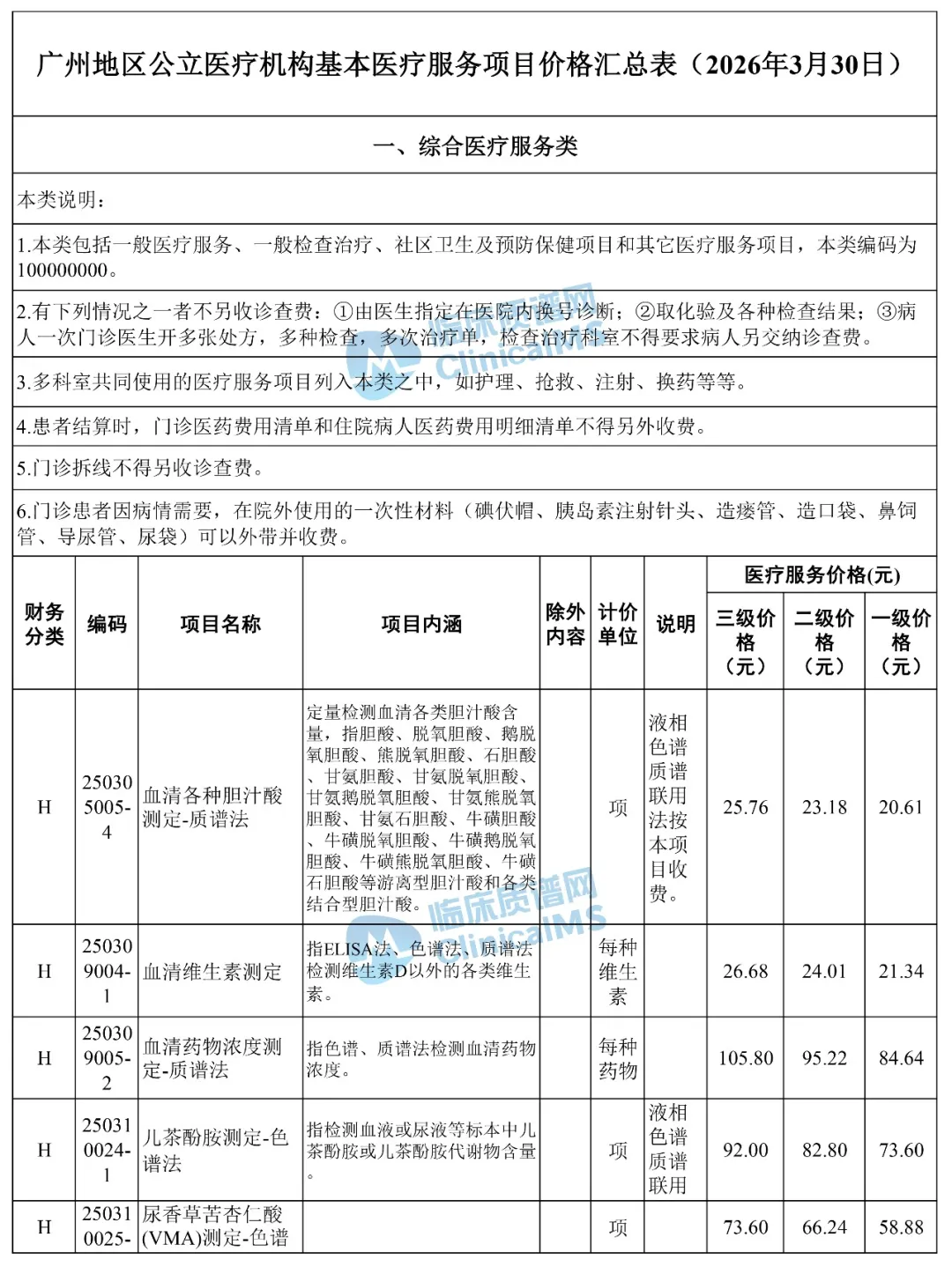 涉及质谱法项目收费!广州发布公立医疗机构医疗服务项目价格汇总表