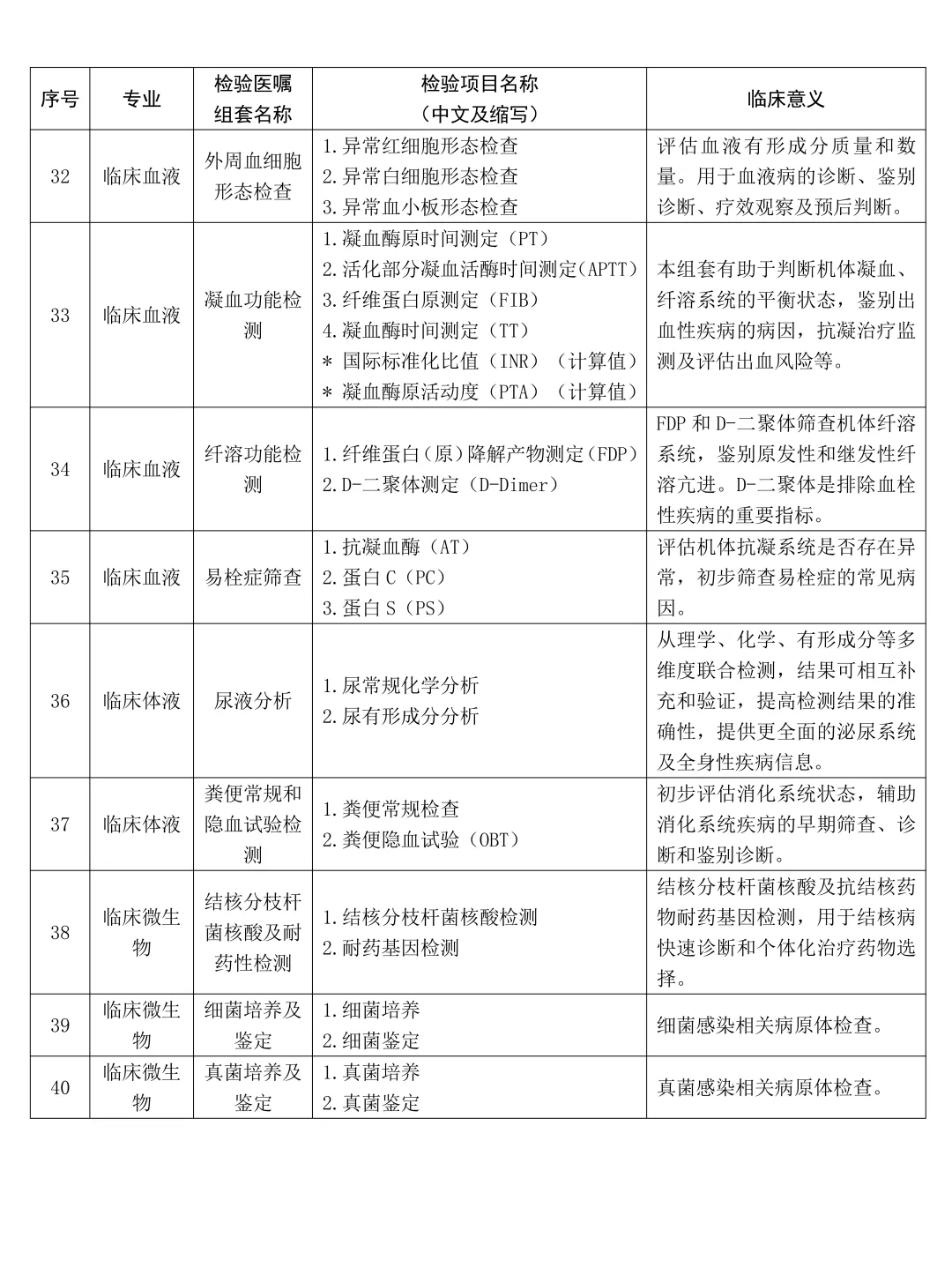 此外,考虑到各地区、各医疗机构患者人群与病种不同,结合国家慢病防控、肿瘤早筛等需求,允许各地各医疗机构根据本地、本机构人群特点、临床需求、专科特色,经组织医疗机构的医务、医保、临床和检验等专家充分论证后,补充完善建立本地或本机构的检验项目组套,形成“39+X”的检验项目医嘱组套格局。